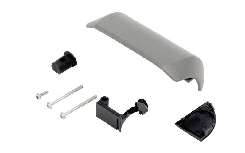 Inkl. 1x Gewindefurchschraube 3.5x12, 2x Gewindeschraube 3.5x42, 1x Anschlag, 1x Abdeckkappe Ladebuchse
