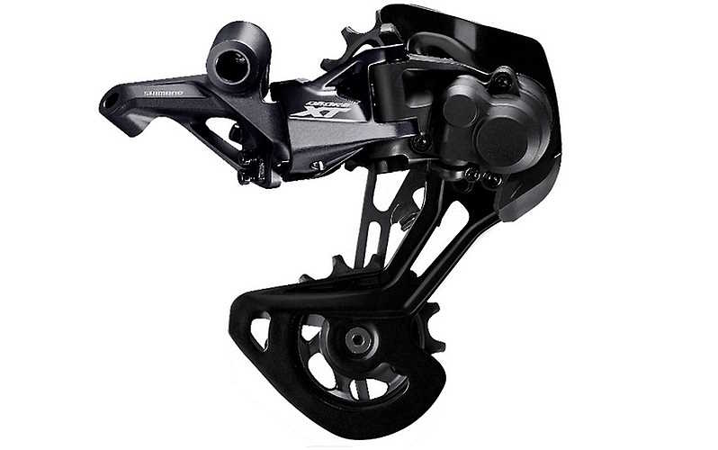 Die DEORE XT M8100 Schaltwerkserie sorgt durch weniger Spannung in den niedrigen Gängen und einen zusätzlichen Anschlag am Käfig für ein neues Level an Geräuscharmut. Die größeren 13Z-Umlenkrollen sorgen für mehr Effizienz und besseres Kettenmanagement, während die Kompatibilität mit SHIMANOs 12-fach-Kassetten die Bandbreite deutlich erhöht.