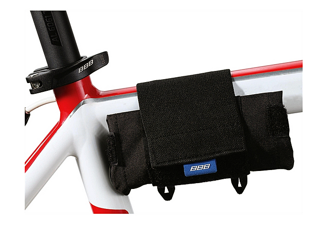 Multifunktions-Werkzeugrolle mit Platz für einen Ersatzschlauch, Werkzeuge, CO2-Kartuschen und einer Tasche für Kleinteile.